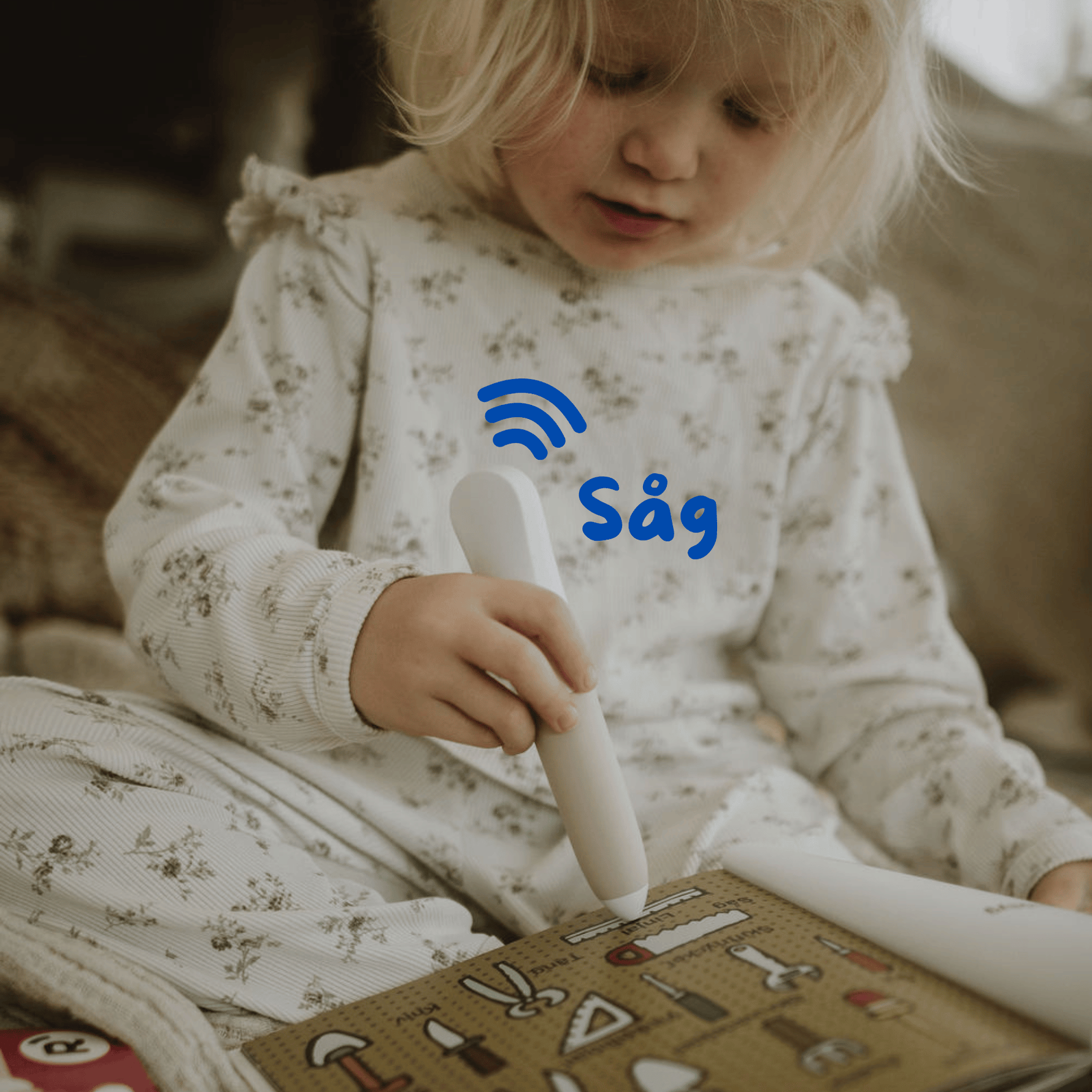Läspennan identifierar små koder tryckta på boksidorna och spelar upp det tilhörande ljudet. Därför fungerar den endast med produkter som är särskilt anpassade för tekniken.