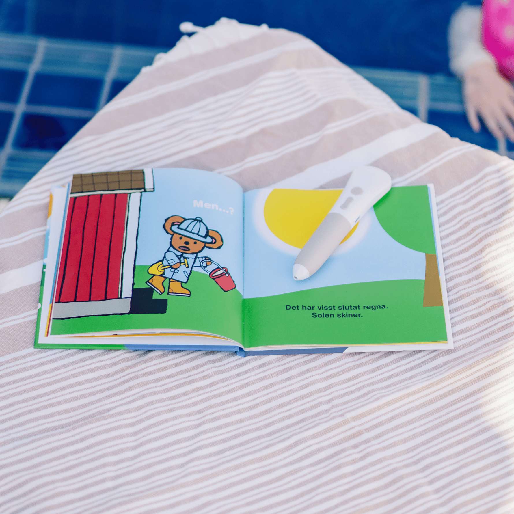 Ge berättelsen ett helt nytt liv genom att addera ljud till din läsupplevelse med Readioos läspenna (säljs separat – klicka här för att köpa)! Dutta på boksidorna och upptäck förinspelade meningar, ljudeffekter och musik. Lyssna på när vinden yr, regnet smattrar och Pino river runt bland sina kläder.