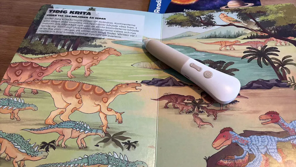 ✨ With Readioo's reading pen (sold separately – click here to buy), the books come to life. Tap on pictures and texts to hear over 200 facts about how dinosaurs lived and about galaxies, stars, and planets.
